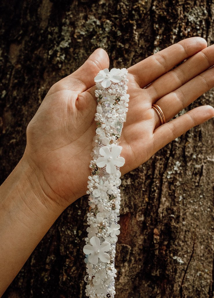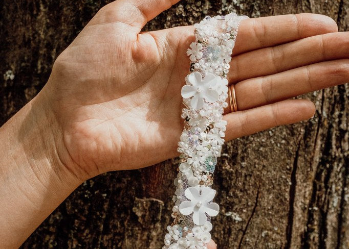 Ce galon fleuri est entièrement brodé à la main, dans mon atelier, à partir d'un mélange de fournitures soigneusement choisies, idéale pour une touche printanière pour sublimer vos tenues ou accessoires faits main.