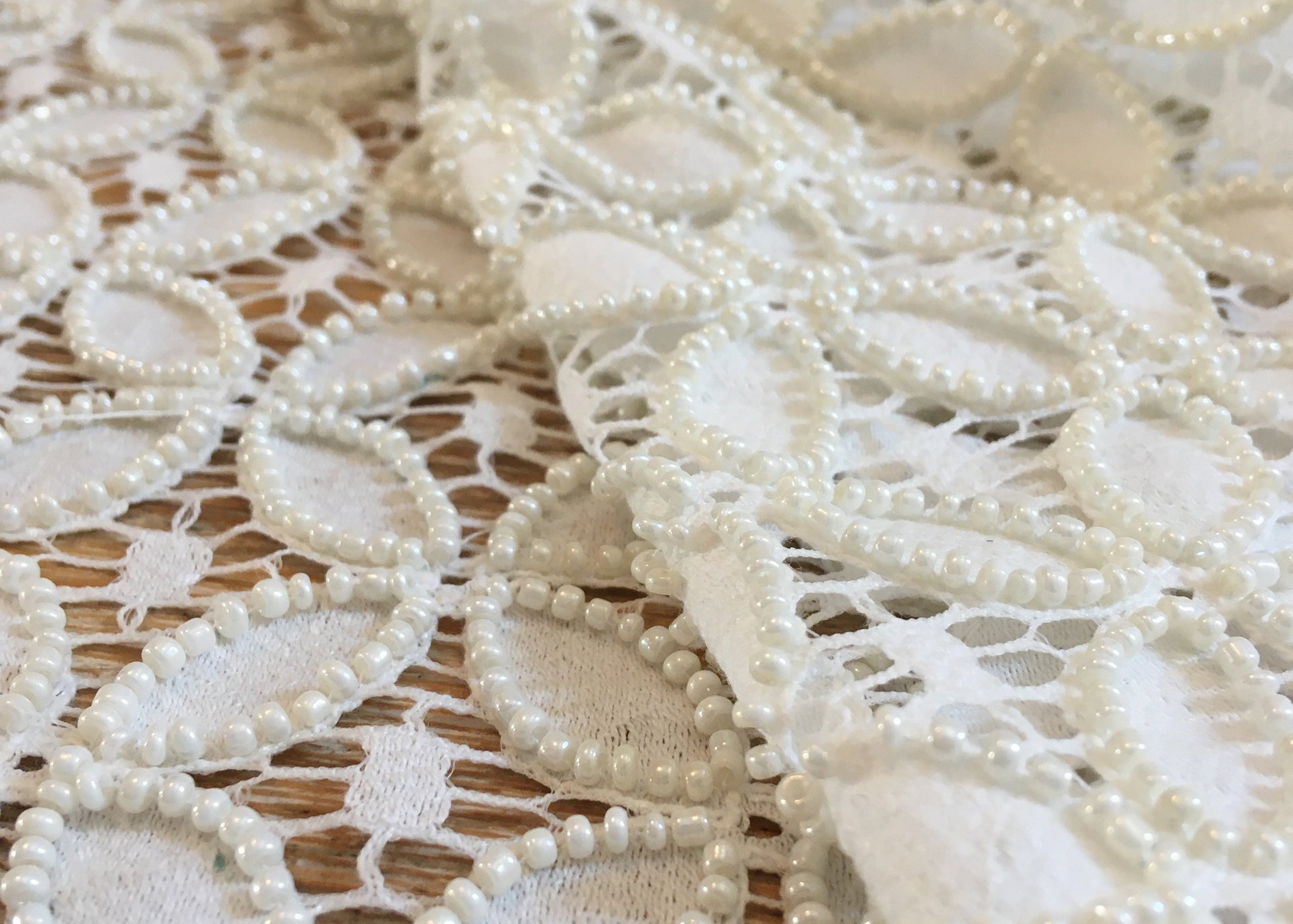 Ce travail délicat permet de transformer une dentelle en pièce unique, entièrement pensée pour s'intégrer avec cohérence et élégance dans la robe imaginée. Le choix des matières est réfléchi ce qui permet de donner du relief, de capter la lumière et d'ajouter une touche unique à chaque création.