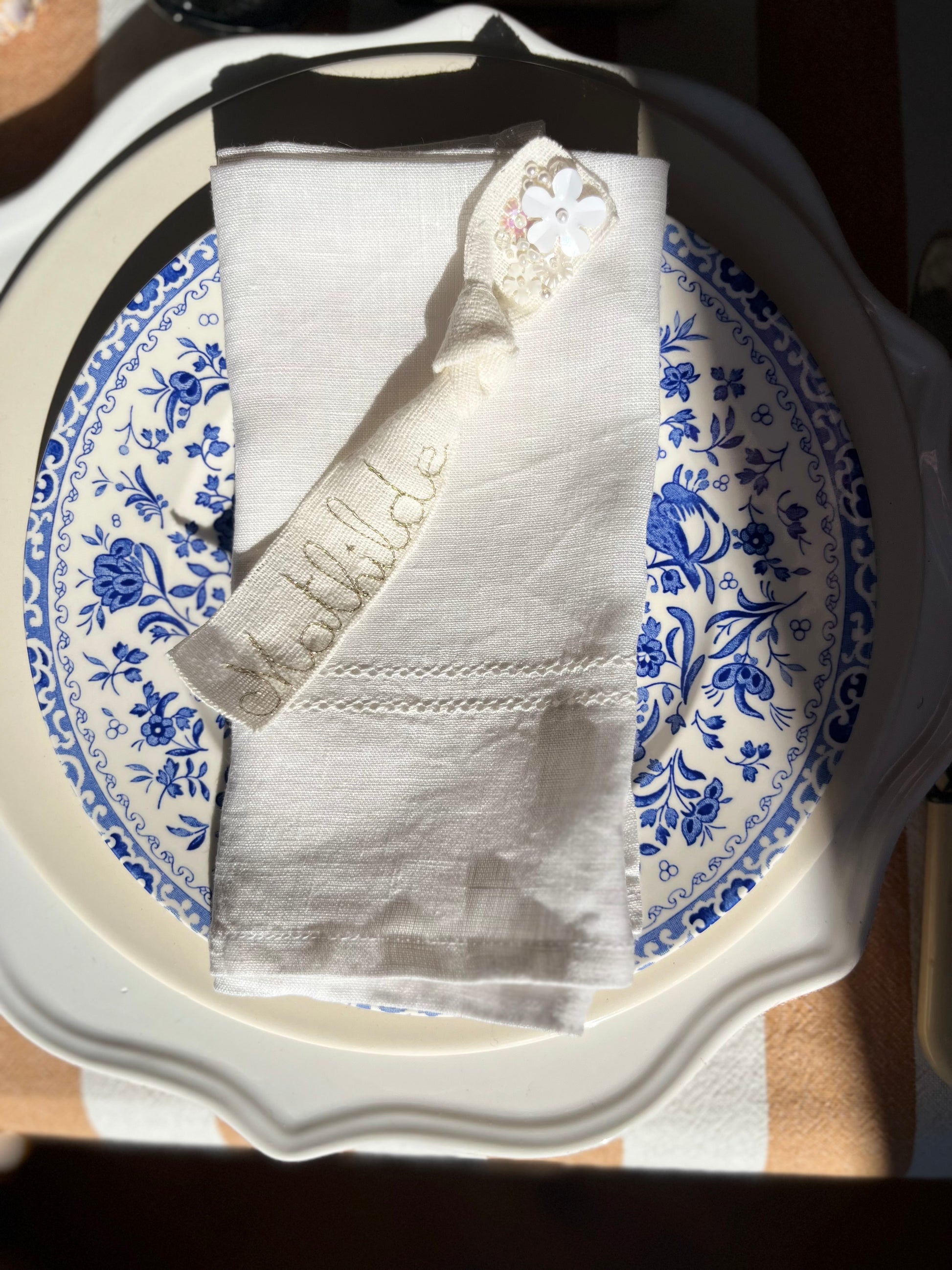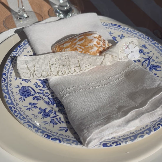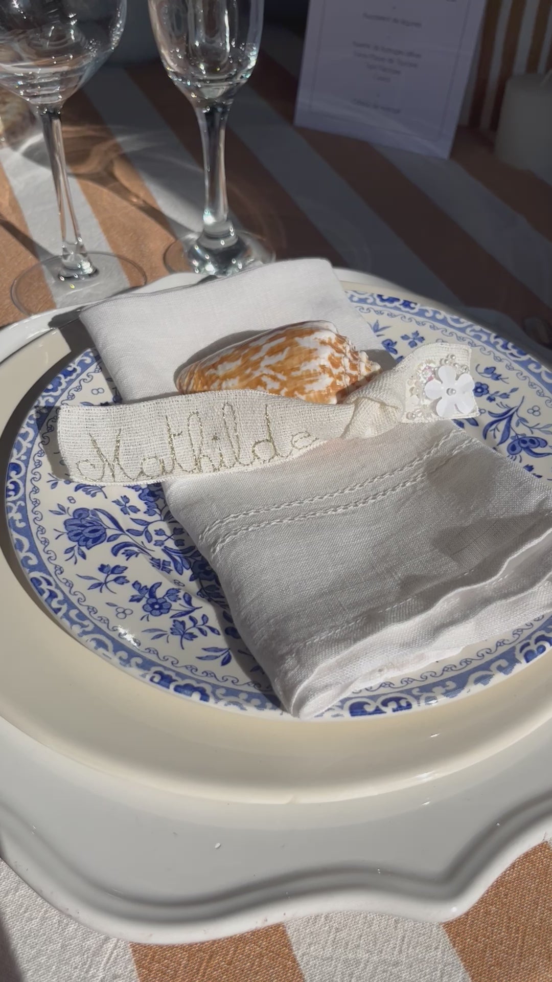 Les marque-places brodés apportent une touche d’élégance à votre table de mariage. Chaque marque-place est brodé à la main, avec patience et minutie, pour créer un souvenir unique et élégant à offrir à vos invités.