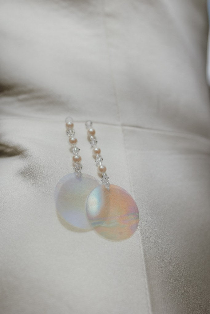 Pampilles vendues par 10 sur fil libre composée de perles à facettes 2mm de perles en cristal 4mm, de perles baroque de 8mm argentée et d'un pendentif cristal de 30mm d'une longueur total de 7cm.